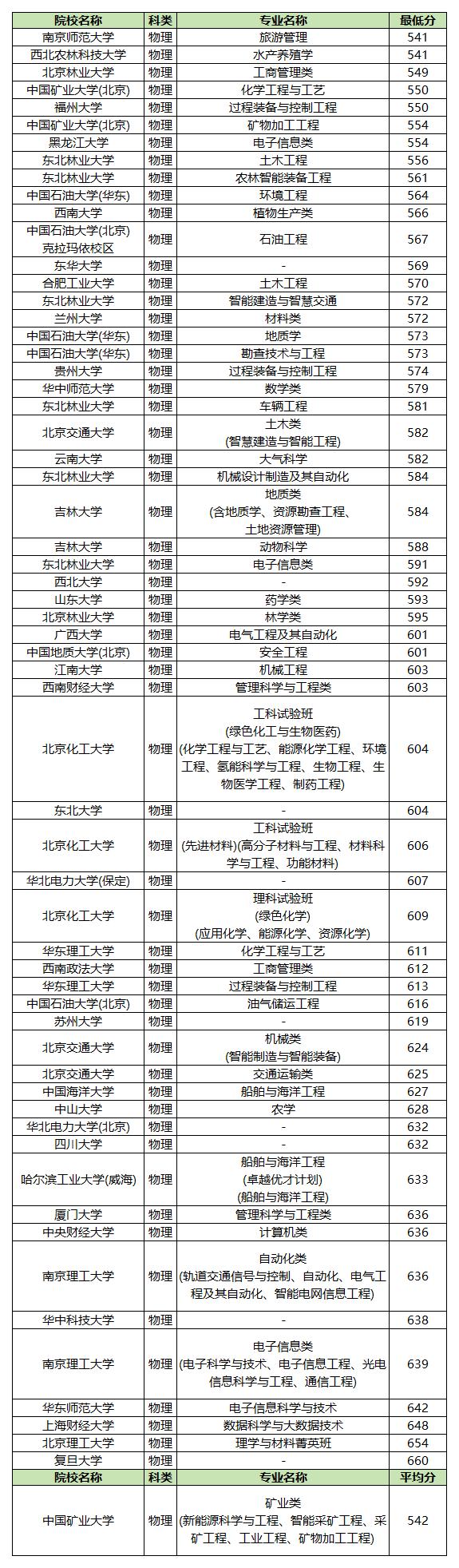 1、物理类:最低分541分