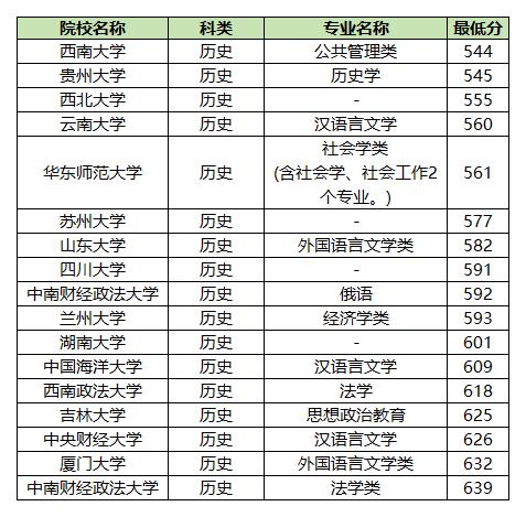 2、历史类:最低分544分