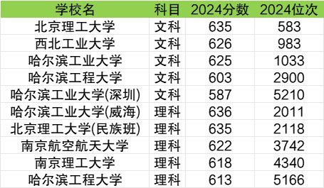 文科收分最低的国防七子有西北工业大学;