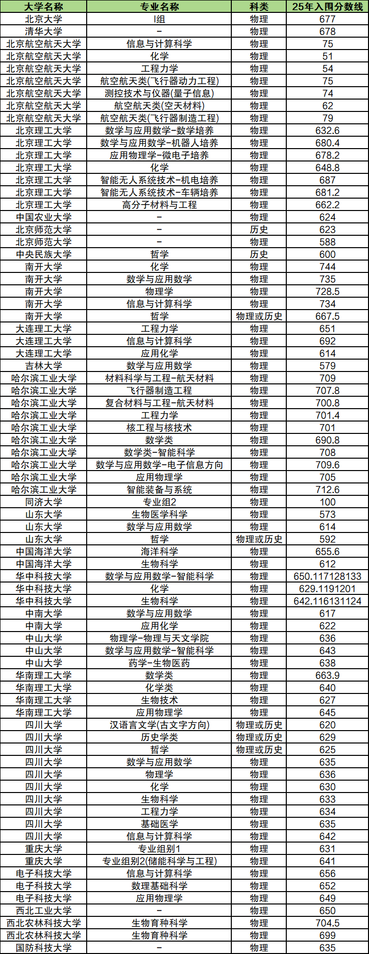 下面是四川强基计划入围分数线表: