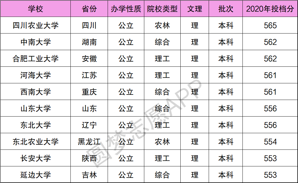从上表可知,山东考生570分能上的211大学至少有8所。除此之外,青海大学、石河子大学、新疆大学、西藏大学也是能考上的,但它们在山东2020年的投档线低于了550分,填报这几所大学的话比较浪费高考分数。
