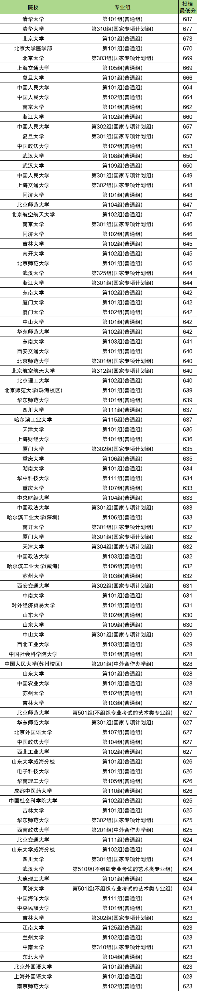 篇幅有限,仅展示2025年全国大学在河南本科录取分数线排名前100强名单: