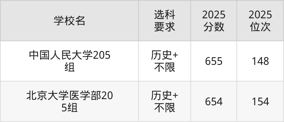 | 学校名 | 专业组 | 选科 要求 | 2025 分数 | 2025 位次 |