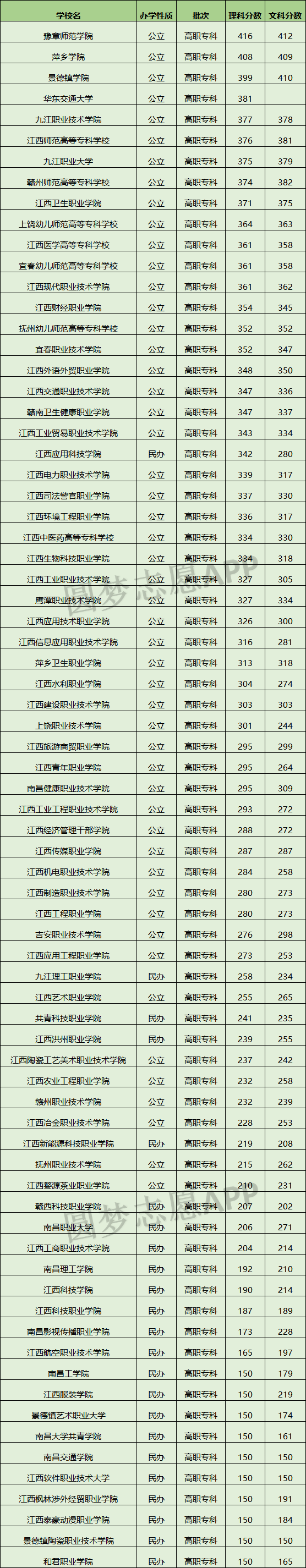 从下表的2022年高考江西所有专科批学校分数线可知,江西共有74所大学在专科批招生。