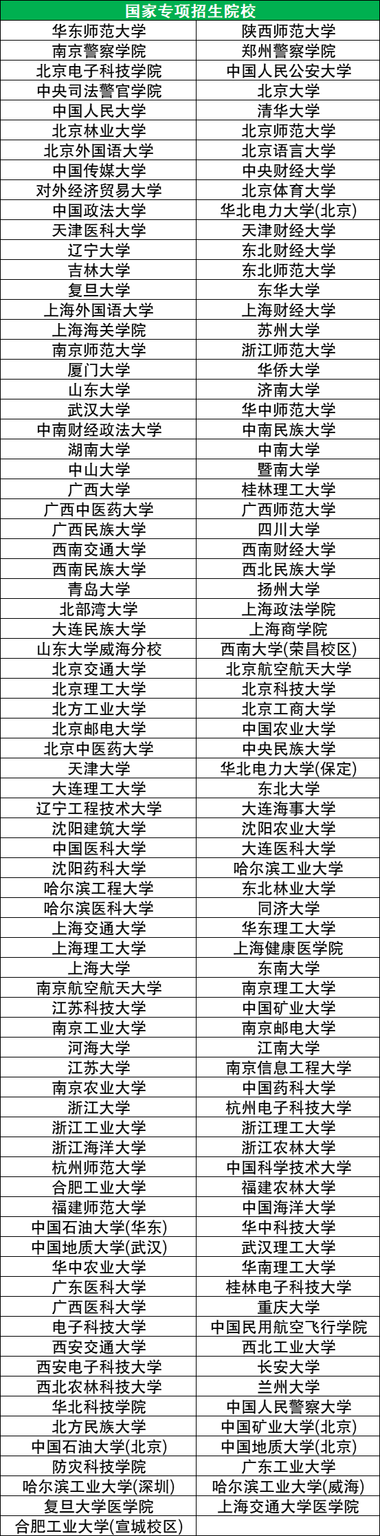 注:专项计划有降分录取的可能,可以给农村优秀学子提供多一条升学路径,但专项计划专业有限制,建议考生了解清楚大学招生专业情况再行选择。
