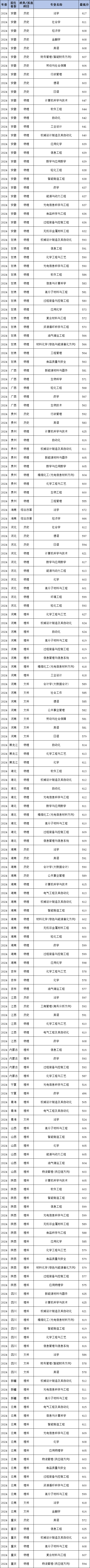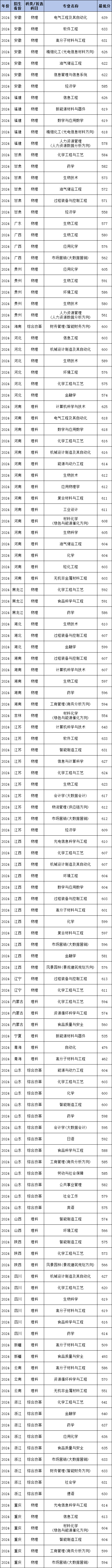 | 首选科目 | 专业名称 | 最低分 |