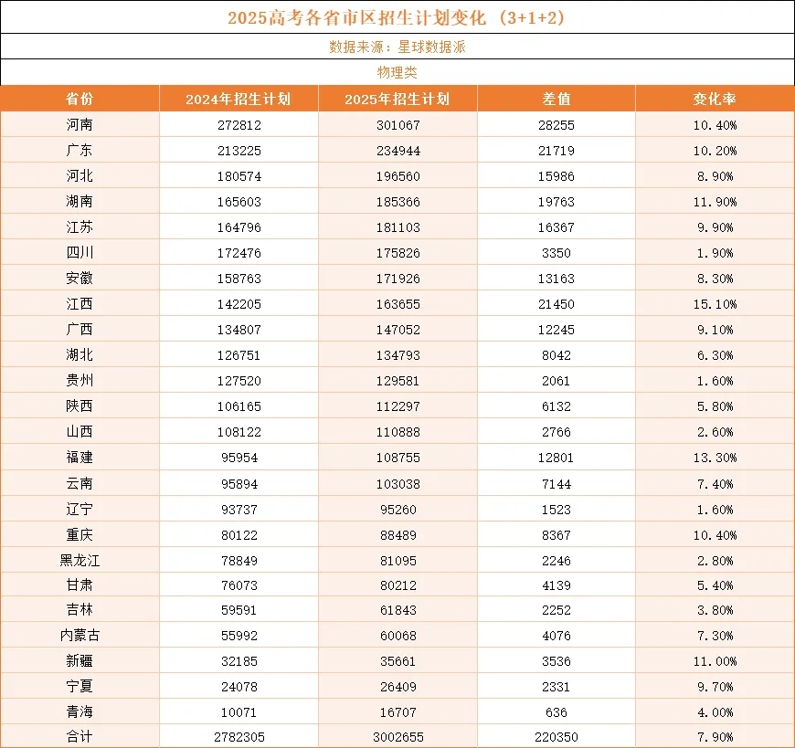 2025年全国招生计划表