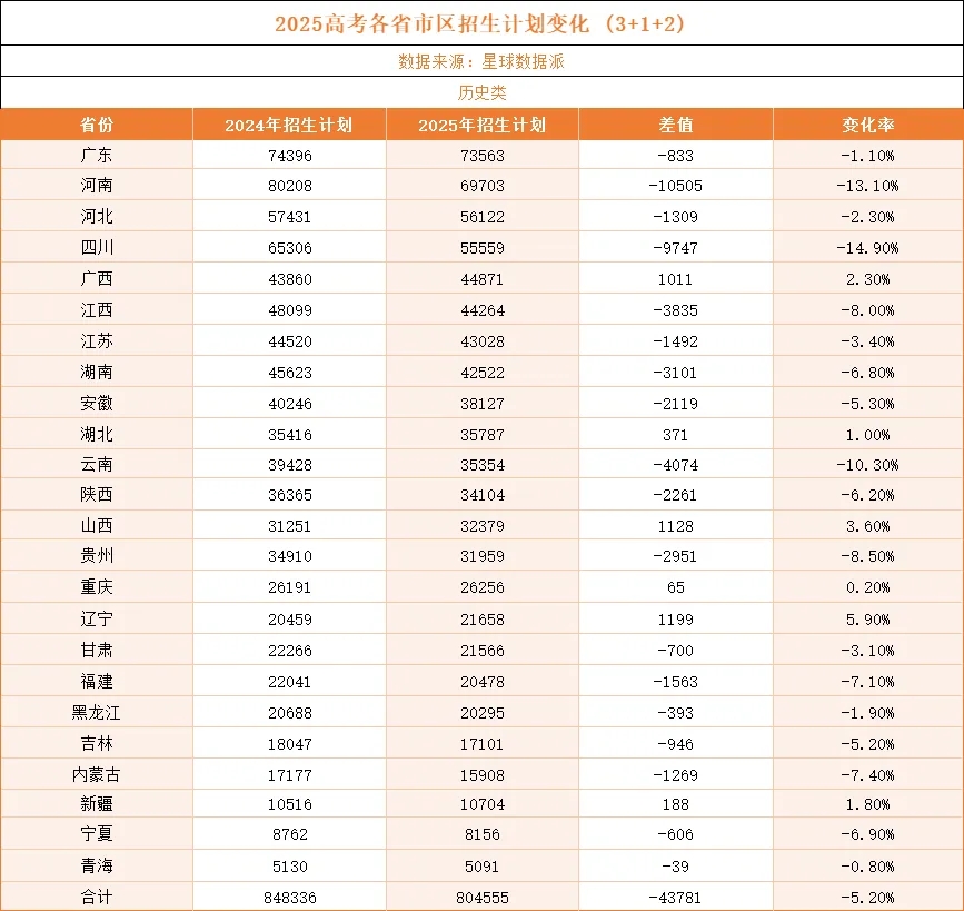 历史类缩招并非“文科式微”,而是教育资源配置的优化调整。河南历史类缩招超1万人、四川降幅13%的背后,是就业市场对传统文科专业的结构性饱和。