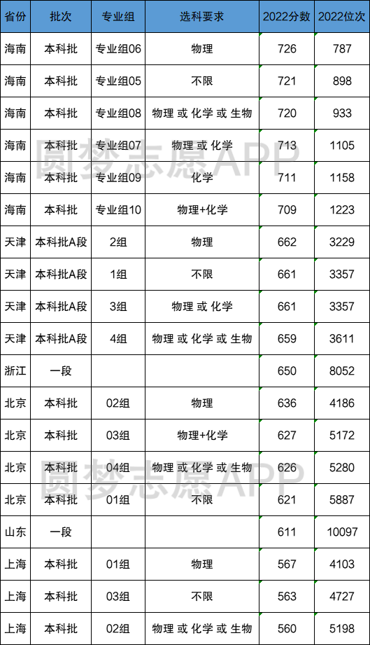 在采取“3+3”模式的6个省份中,录取分数线最高的是海南(726分,787名),录取分数线最低的是上海(560分,5198名)。