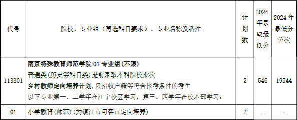 南京特殊教育师范学院2025年公费师范生招生计划表: