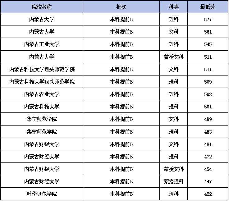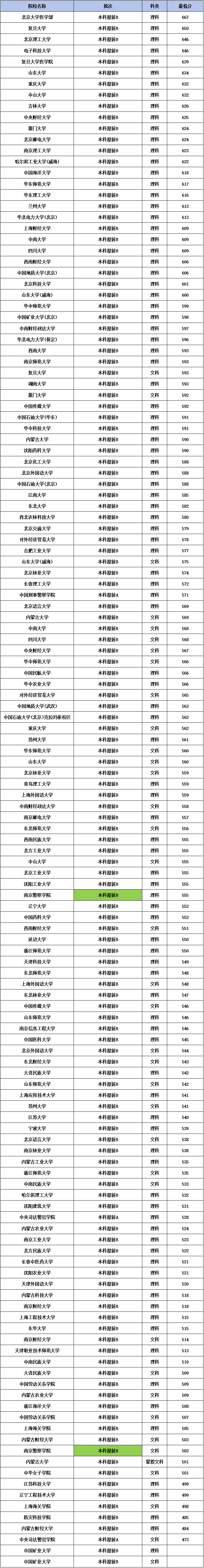 注:本文只整理出专项计划院校在内蒙古的招生最低分,不含专业组、具体专业分数线。