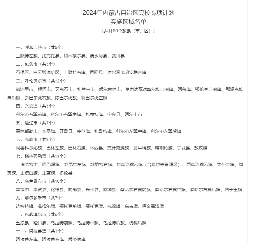 内蒙古地方专项计划大学名单及录取分数线(滑动查看):