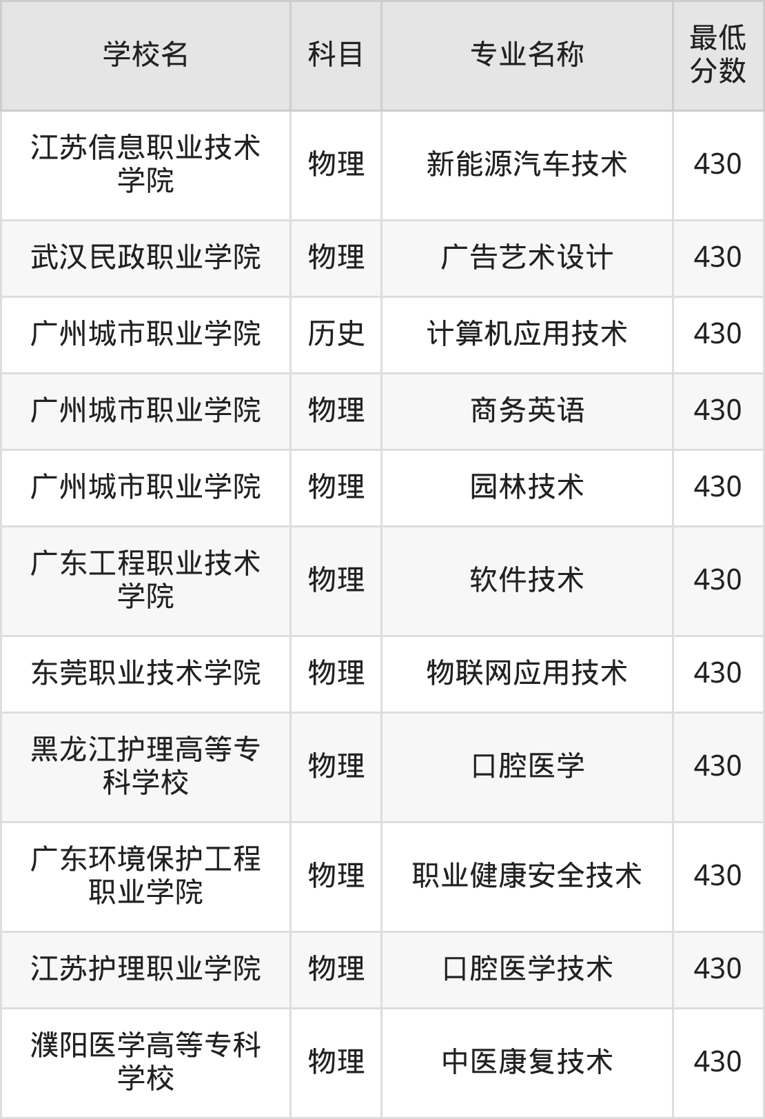 | 广东机电职业技术 学院 | 数字媒体技术 | 物理 | 430 |
