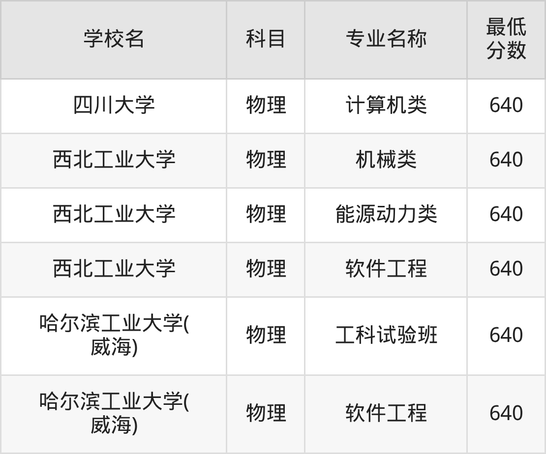 | 西北工业大学 | 软件工程 | 物理 | 640 |