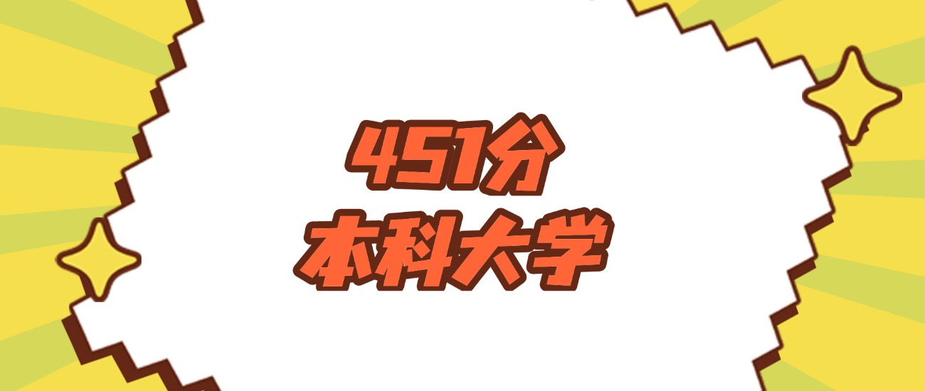 451分对应的最低位次是31665。能上的本科大学有21所,包含:集美大学(轮机工程专业最低分是451分,是国家一流本科专业)、上海应用技术大学(化学工程与工艺专业最低分是451分,是国家一流本科专业、学费7000元)、上海立信会计金融学院(应用统计学专业最低分是451分,是国家一流本科专业、学费7000元)。