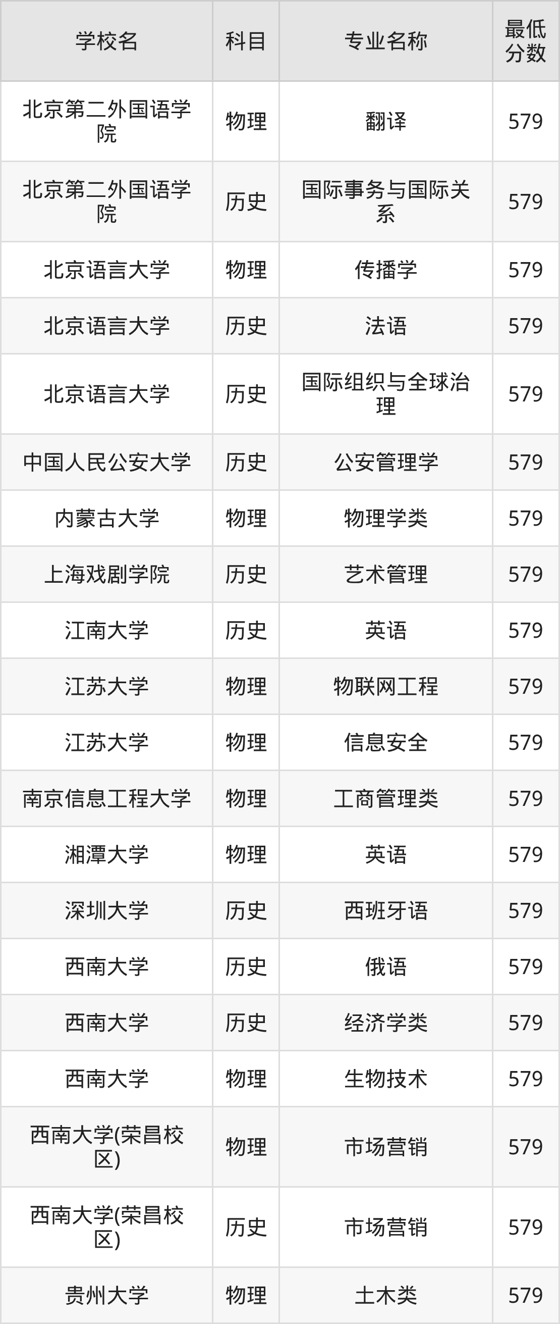| 北京语言大学 | 传播学 | 物理 | 579 |
