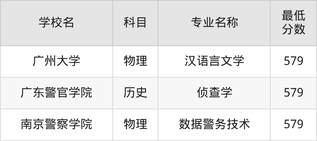 | 广东警官学院 | 侦查学 | 历史 | 579 |