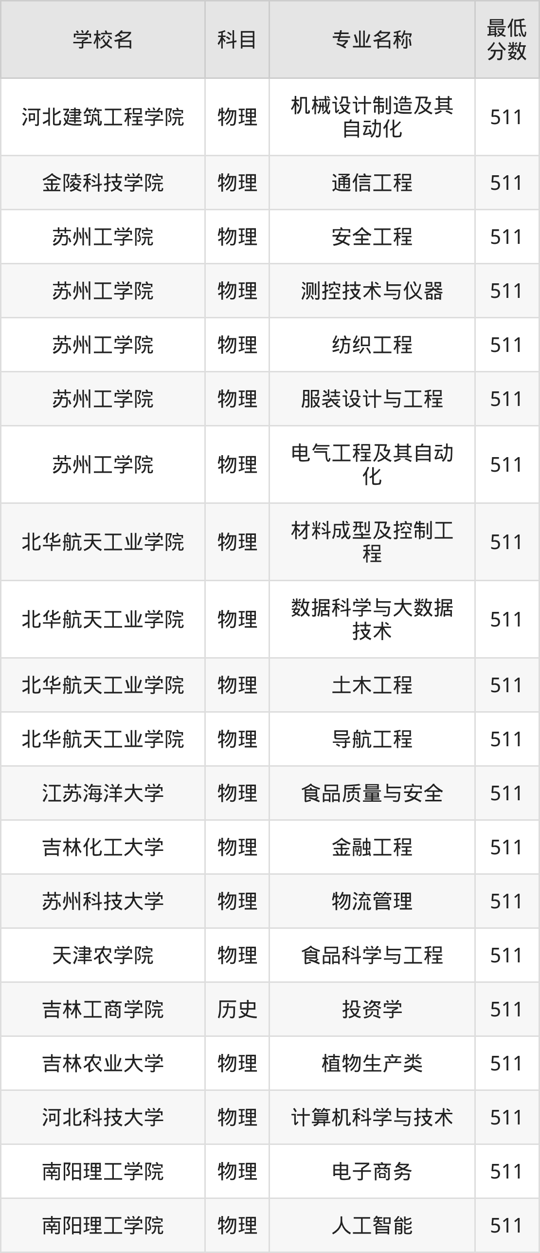 | 河北建筑工程学院 | 机械设计制造及其 自动化 | 物理 | 511 |