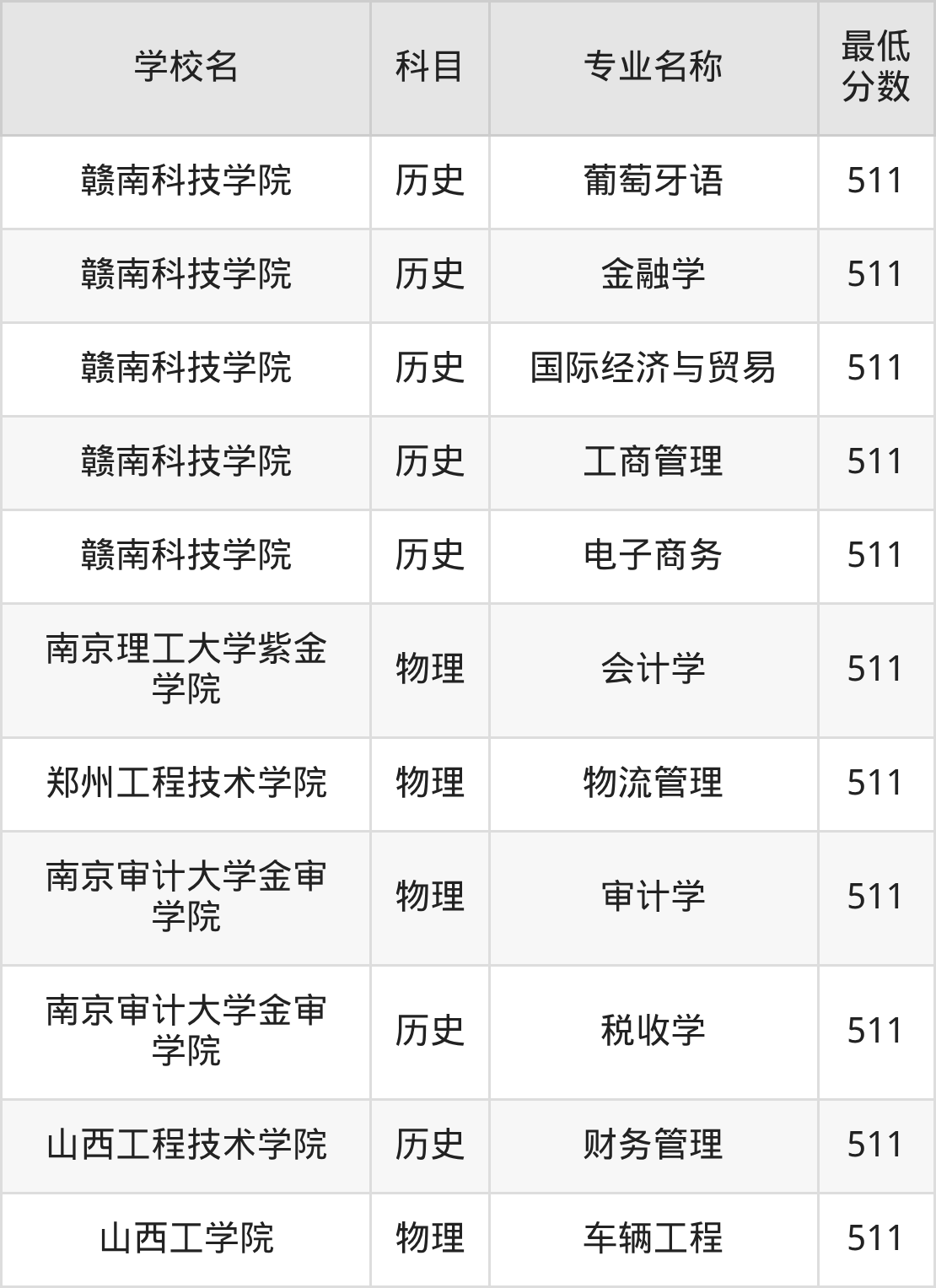 | 赣南科技学院 | 工商管理 | 历史 | 511 |