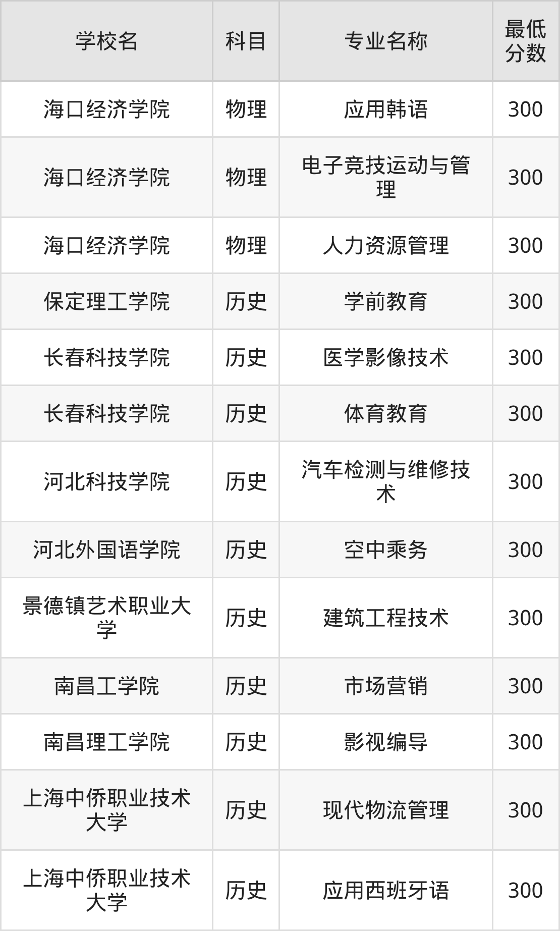 | 海口经济学院 | 应用韩语 | 物理 | 300 |