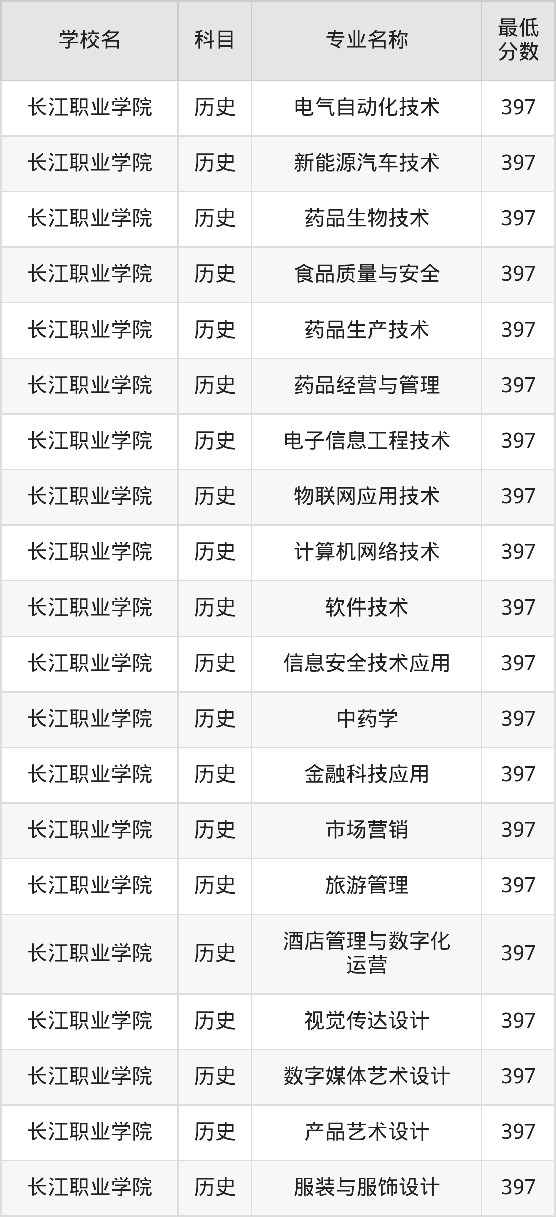 | 长江职业学院 | 软件技术 | 历史 | 397 |