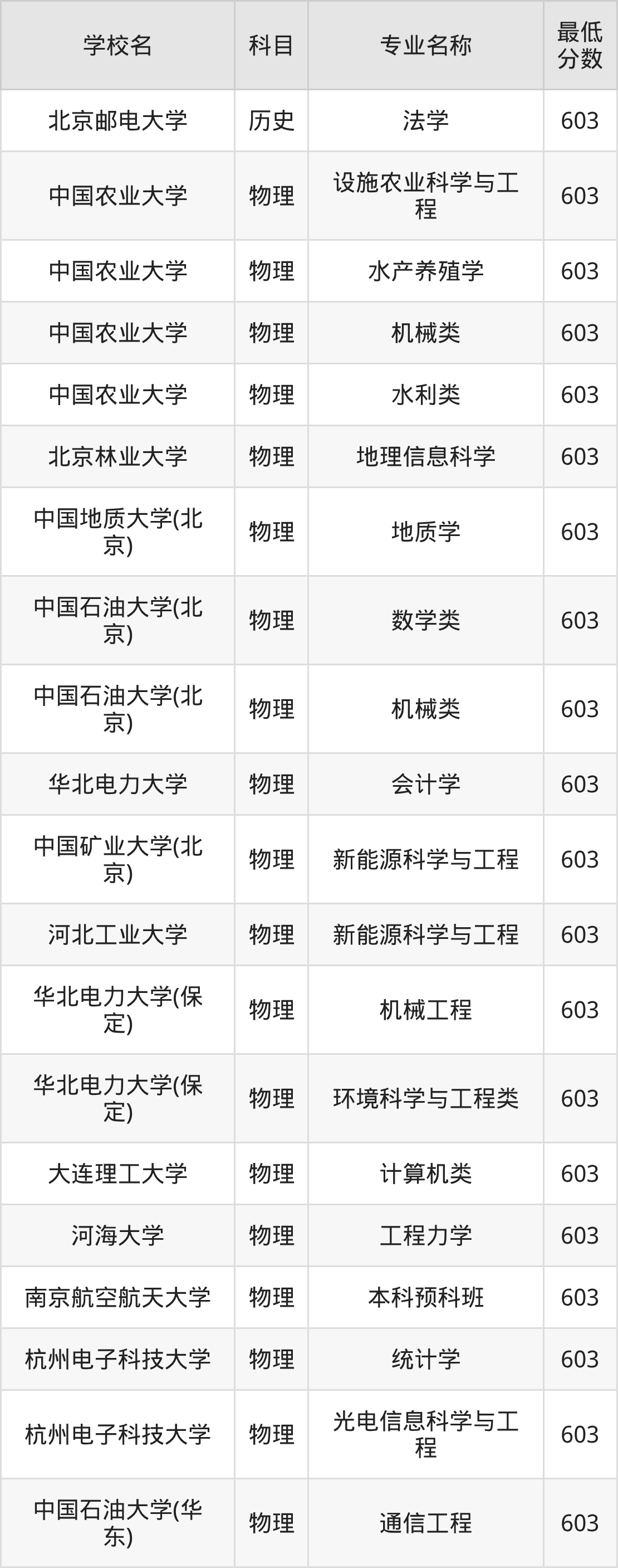 | 中国石油大学(北 京) | 机械类 | 物理 | 603 |