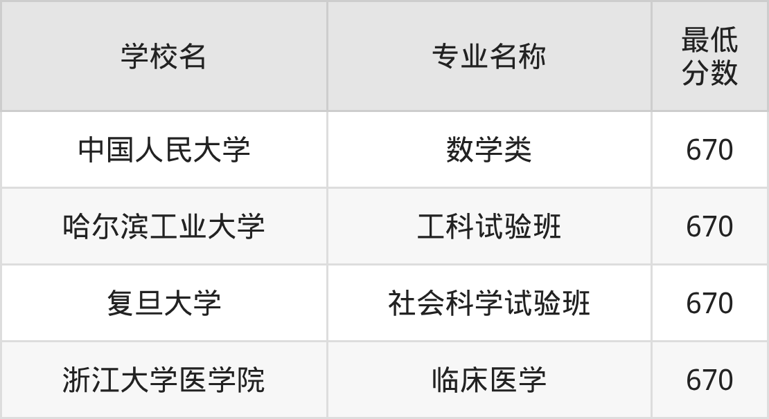 | 哈尔滨工业大学 | 工科试验班 | 670 |