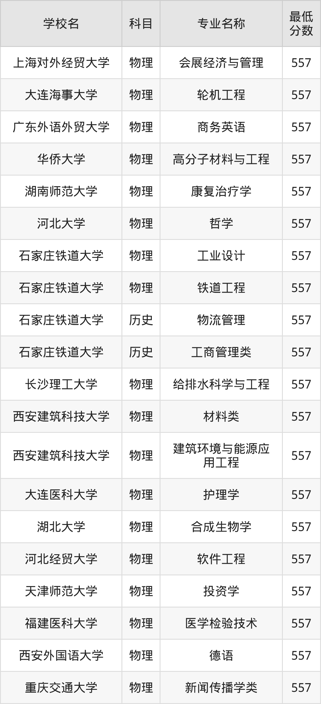 | 西安外国语大学 | 德语 | 物理 | 557 |