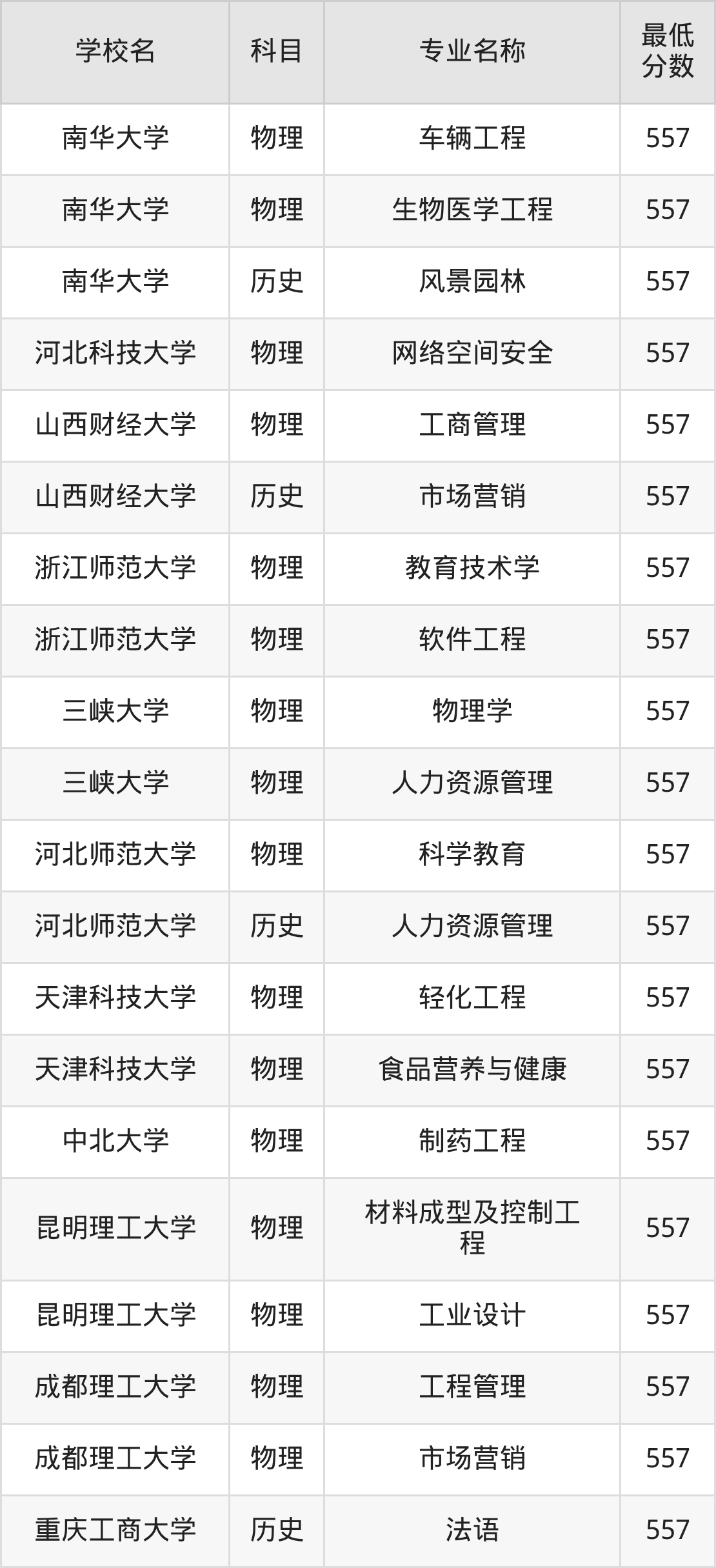 | 南华大学 | 车辆工程 | 物理 | 557 |