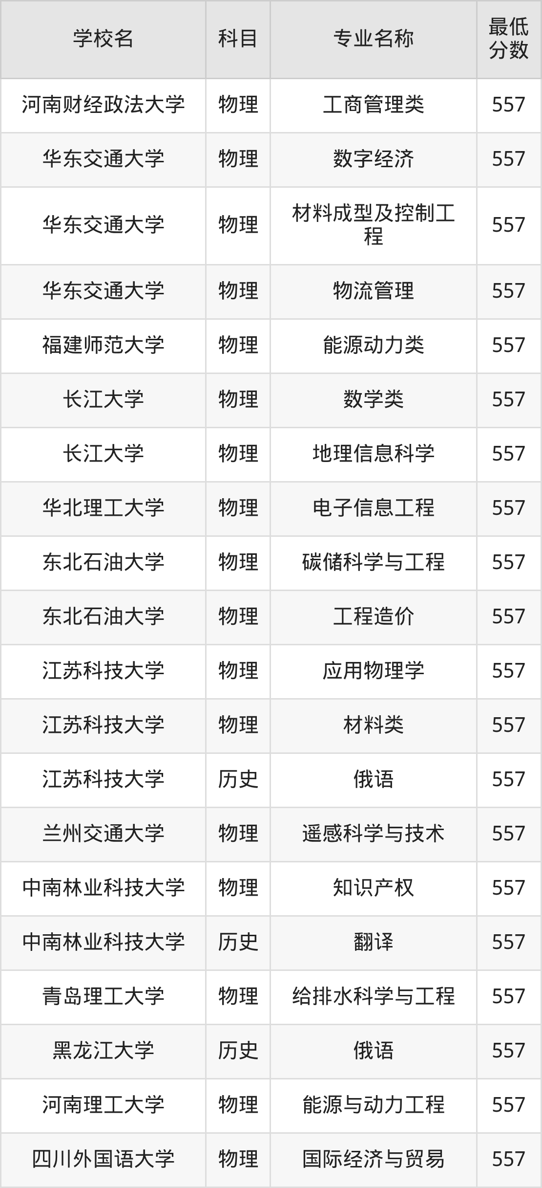 | 华东交通大学 | 物流管理 | 物理 | 557 |