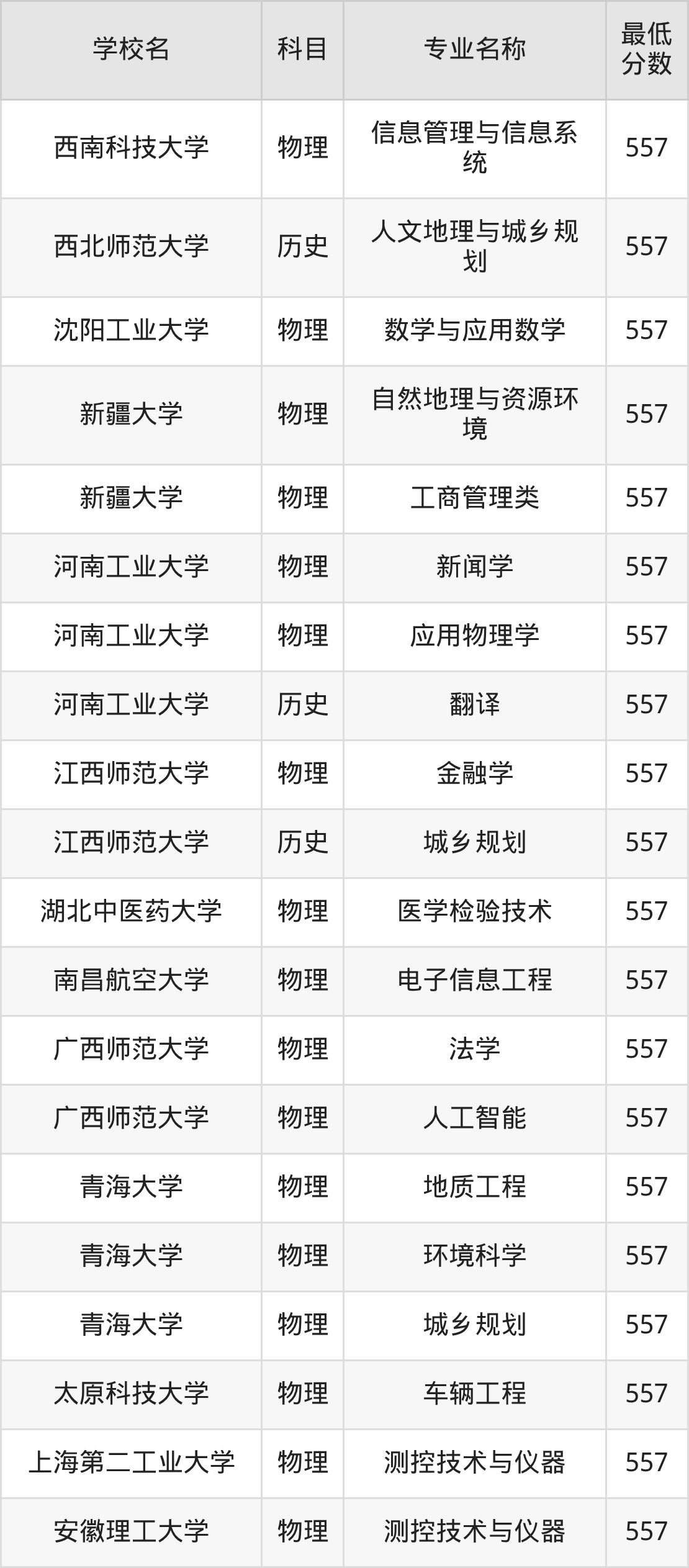 | 西南科技大学 | 信息管理与信息系 统 | 物理 | 557 |