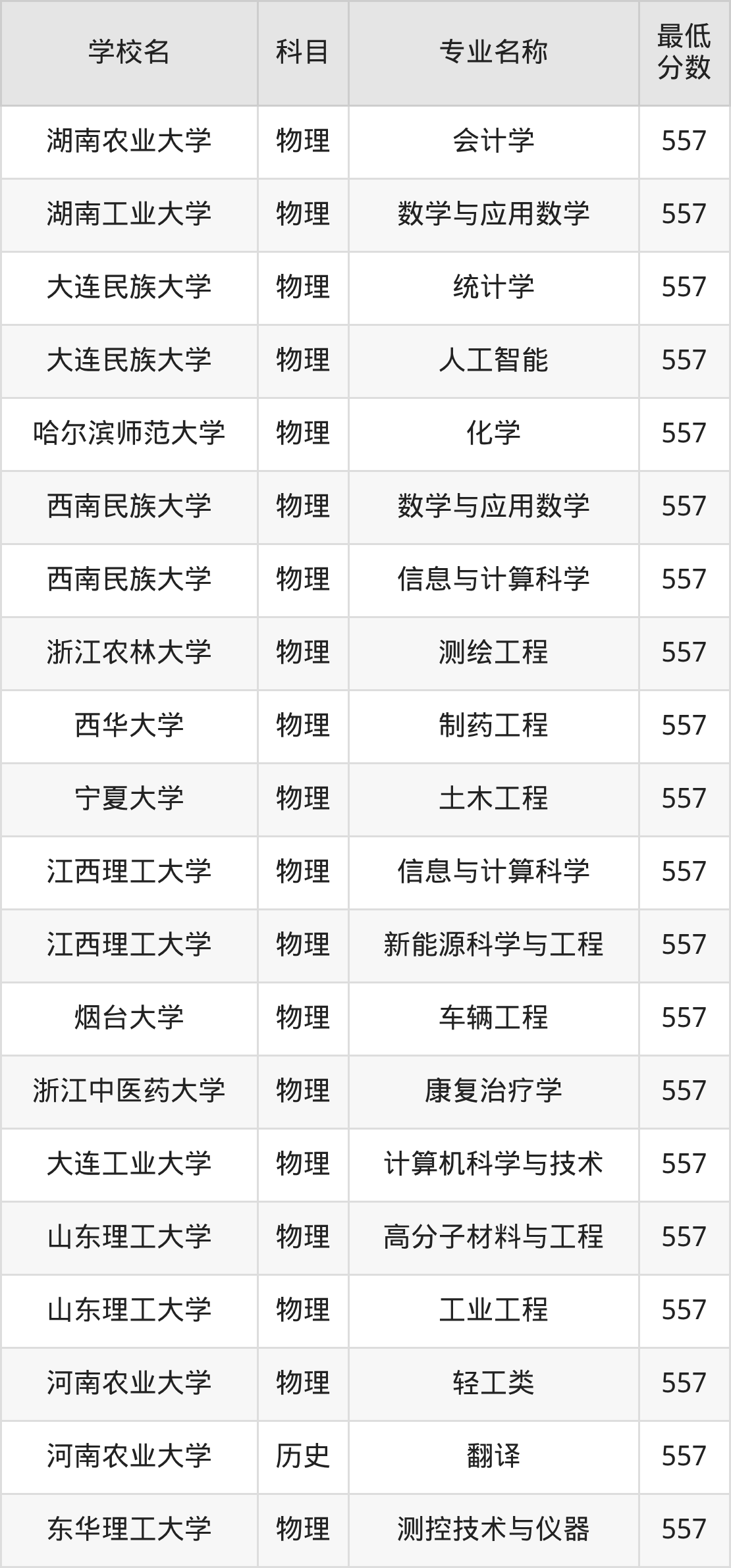 | 湖南农业大学 | 会计学 | 物理 | 557 |