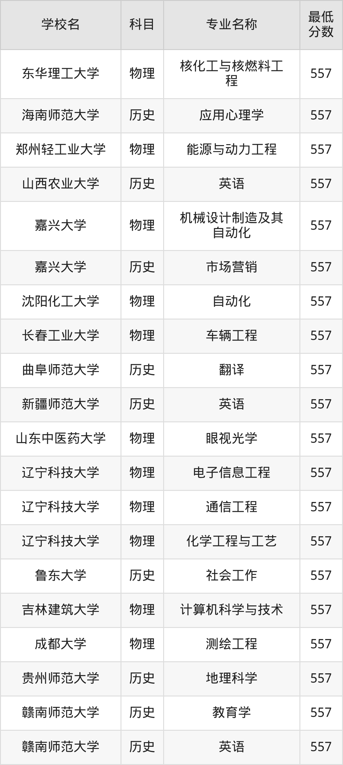 | 东华理工大学 | 核化工与核燃料工 程 | 物理 | 557 |