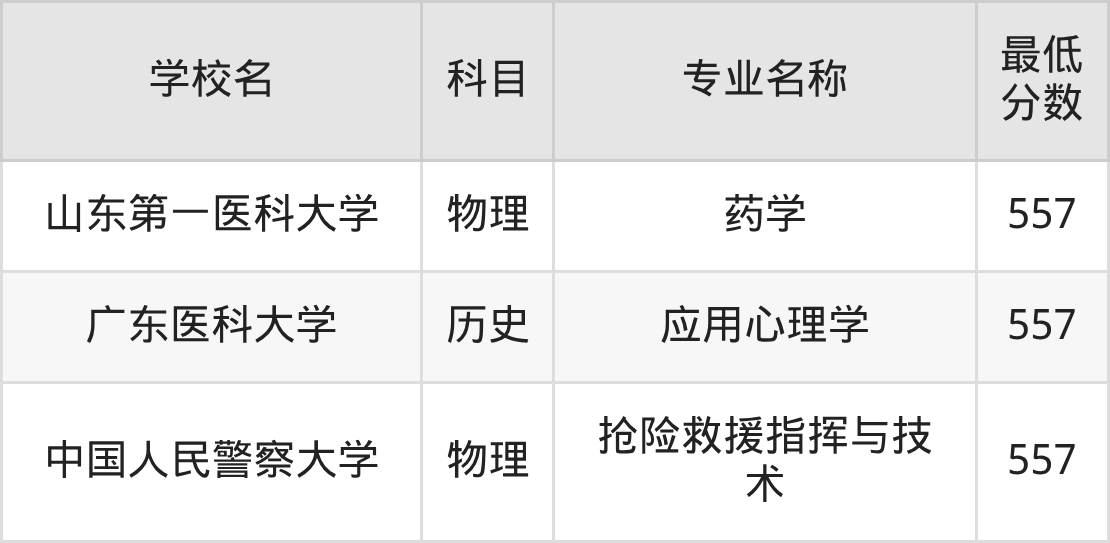 | 学校名称 | 专业名称 | 首选 科目 | 最低 分数 |