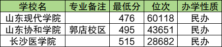在文科二本招生的医学检验技术大学有3所,均为民办学校。录取分数线最低的是山东现代学院(民办),2024年最低分476分;录取分数线最高的是长沙医学院,2024年最低分515分。