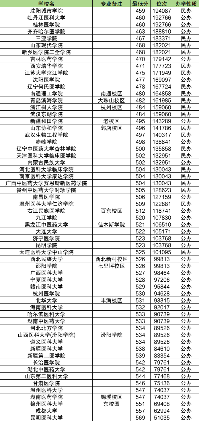 二本医学检验技术分数线排名前五的还有:557分的成都大学、551分的锦州医科大学、547分的湖南医药学院、547分的温州医科大学。