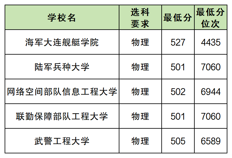 大部分军校每年都制在提前批招生,而且各地区各军校的分数线都不一样,本文就整理出2025年部分省份500分到530分的军校名单,供530分左右的考生参考。