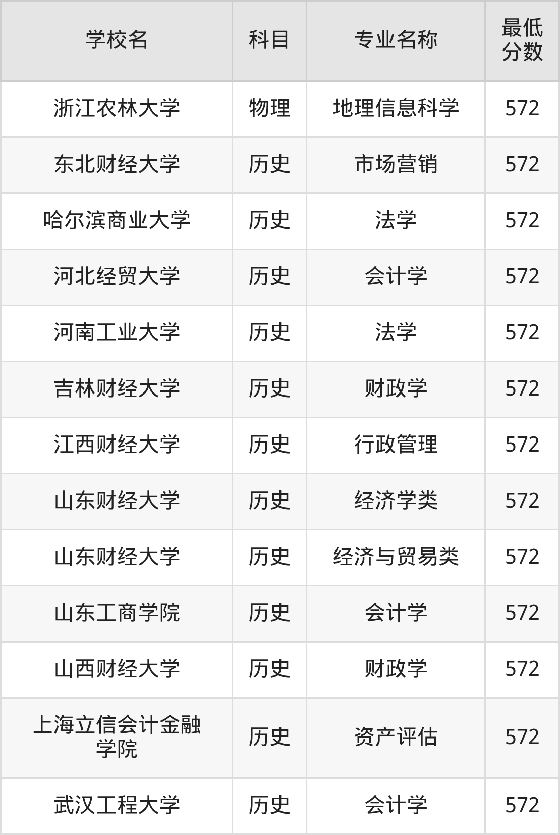 | 山东财经大学 | 经济与贸易类 | 历史 | 572 |