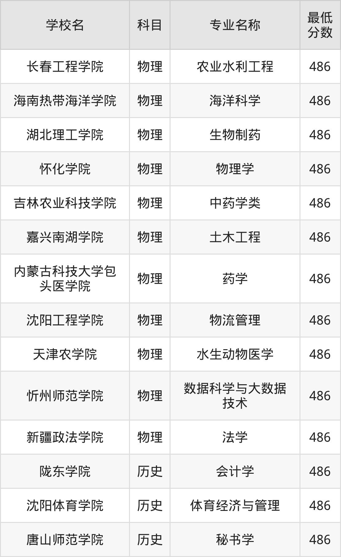 | 长春工程学院 | 农业水利工程 | 物理 | 486 |