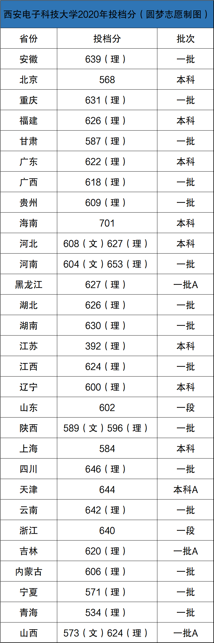 总结:西安电子科技大学招收理科生较多,新高考省份也多为物理必选组。从上图也可以看出,西电2020年的投档分在600分左右,相对是比较高的。这表明,该校的报考热度较高,比较受大家欢迎,喜欢的同学可以报考。