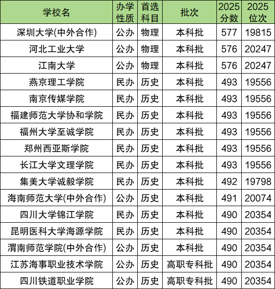 物理类19815名对应深圳大学(中外合作)等,2025年高考分数为577分;