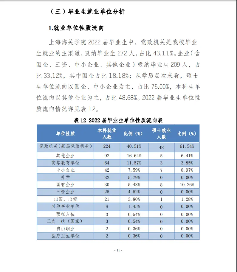下图节选自《2022届上海海关学院毕业生就业质量报告》: