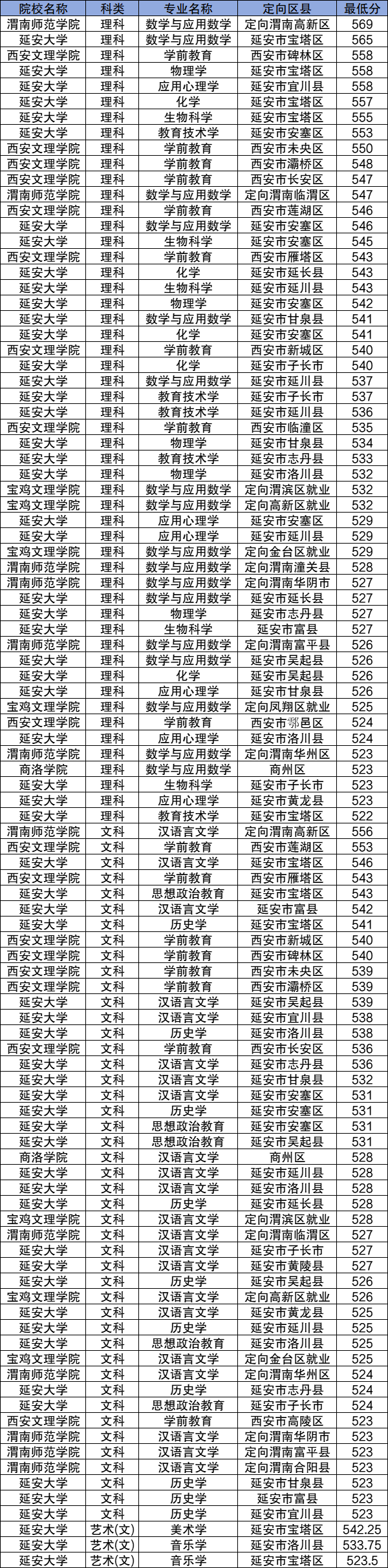 陕西省2025年地方公费师范生学校录取分数线Top100一览表: