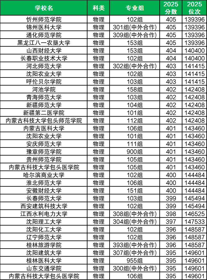 由于广西2025年历史类本科线为402分,所以400分考生只能上专科院校,这里不做展示。