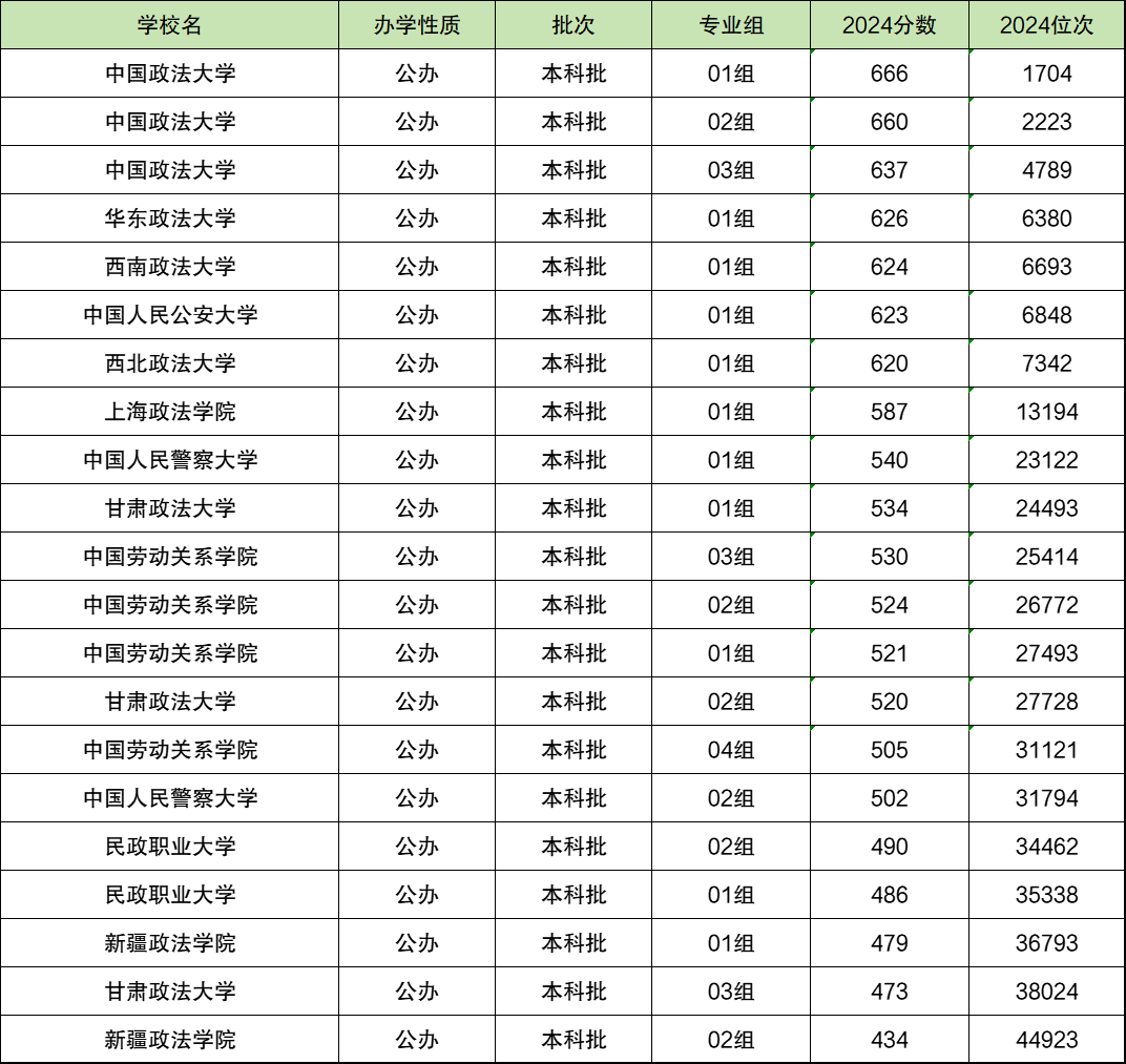 本文就参考2024年北京本科批次的数据,为大家整理出2024年全国政法类大学各专业组在北京的分数线,供参考。