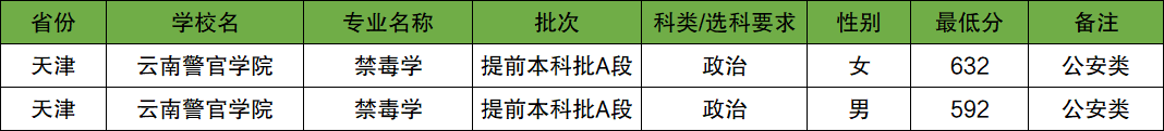 2025年云南警官学院公安专业在天津的录取分数线整理如下,供大家参考。