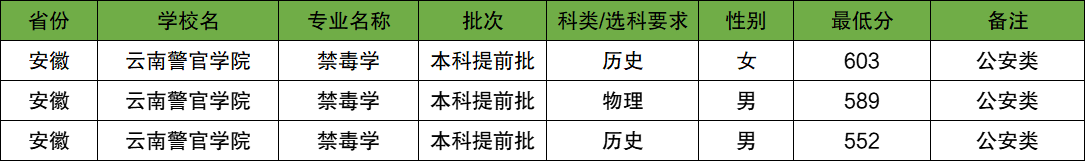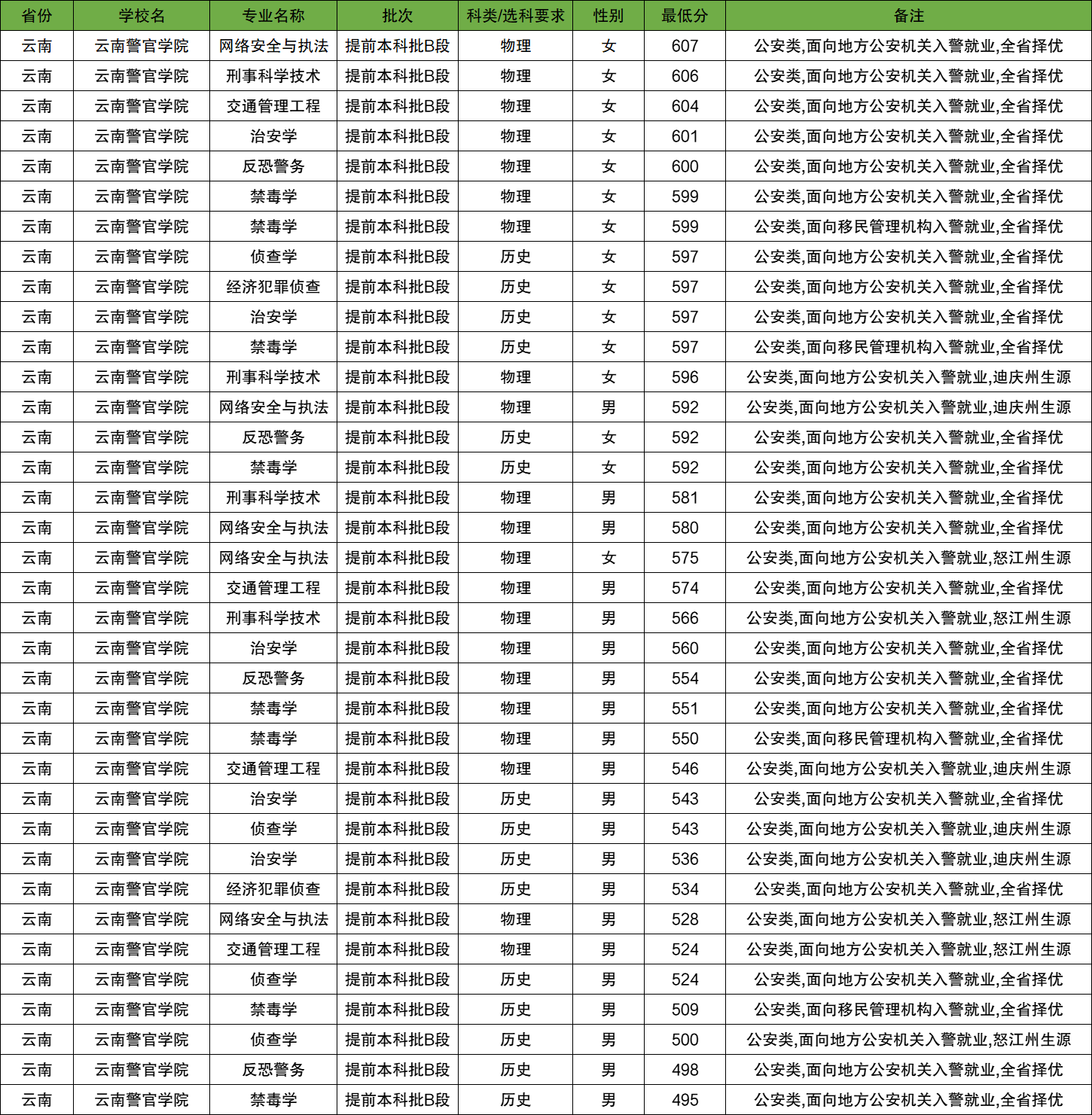 云南警官学院2025年录取分数线已为大家整理如下,包含云南警官学院在全国各省市的公安专业录取分数线,包含2025年学校的招生简章、招生计划等,供2026届考生及家长参考。