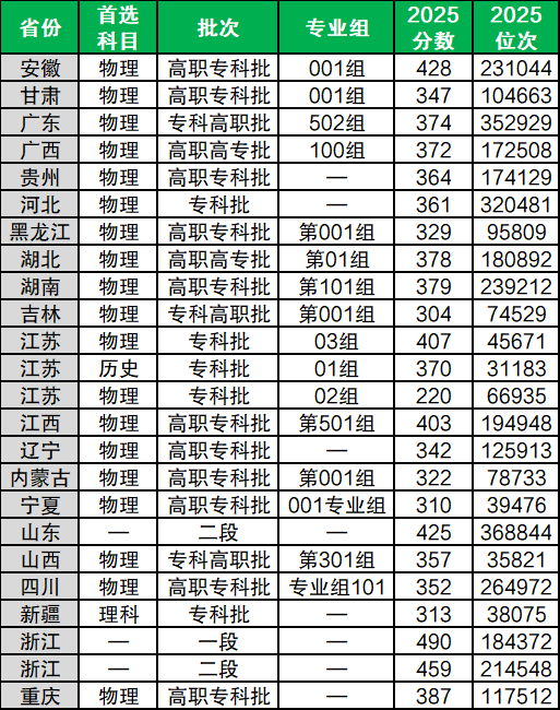 2、省外考生:普通类本科历史类400-470分、物理类390-480分。以浙江省为例,原校2025年专科录取最低分为459分,若2026年投放本科计划,分数线可能提升至460-480分,与省内同类院校持平。