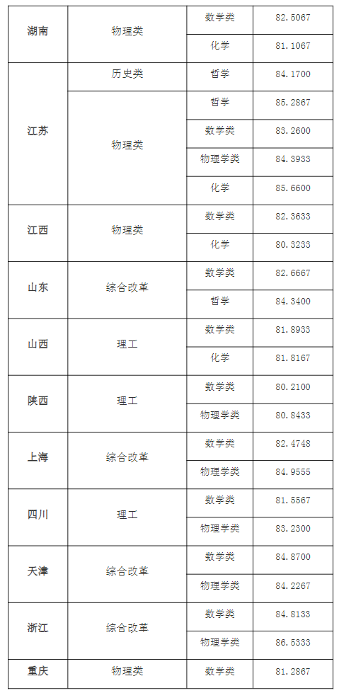 以下为2024年东南大学强基计划各省录取最低综合成绩分数线