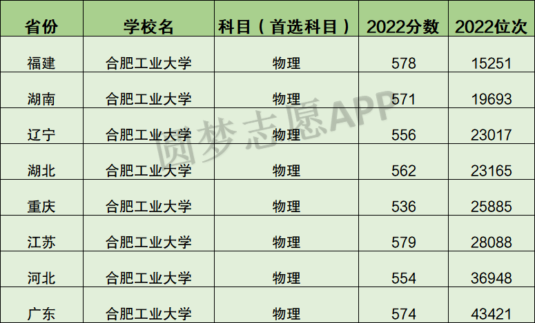不过在大部分传统高考地区中,文科生想要考上合肥工业大学则需要进入全省前4032名,有7个地区的最低位次都在4032名以内。